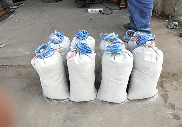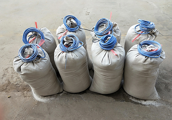 2)將埋有電極的回填料袋,埋入預(yù)先挖好的埋設(shè)坑中,并將周圍土壤壓實,隨后向埋設(shè)地點澆灌適量的淡水,以改善電極連接狀態(tài)。